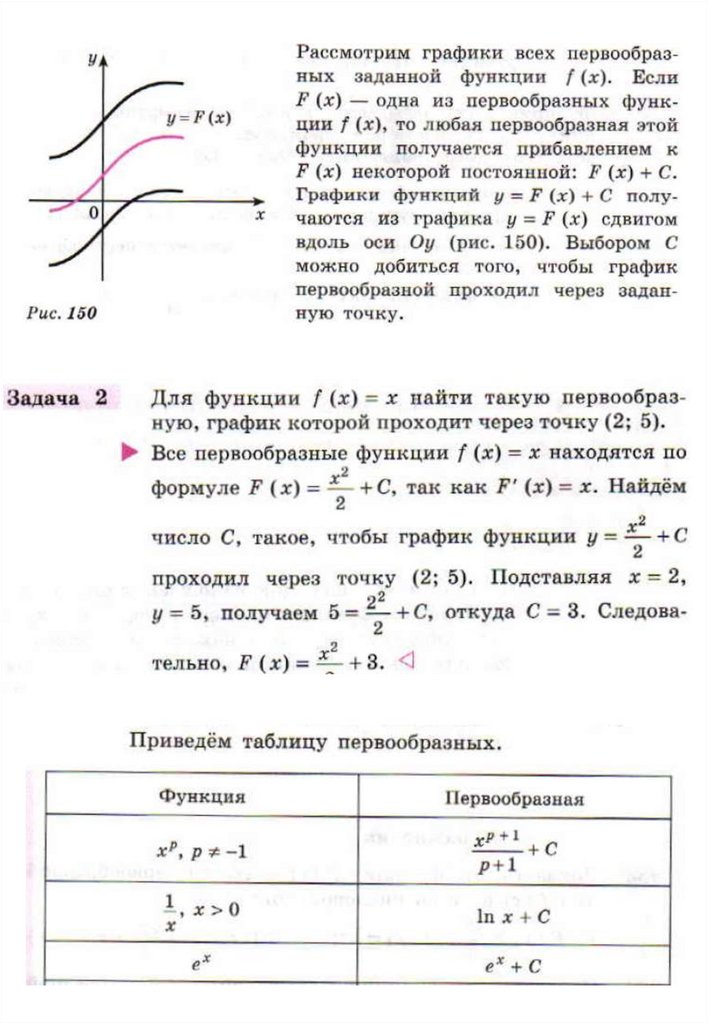 Первообразная. Таблица для нахождения первообразных элементарных функций