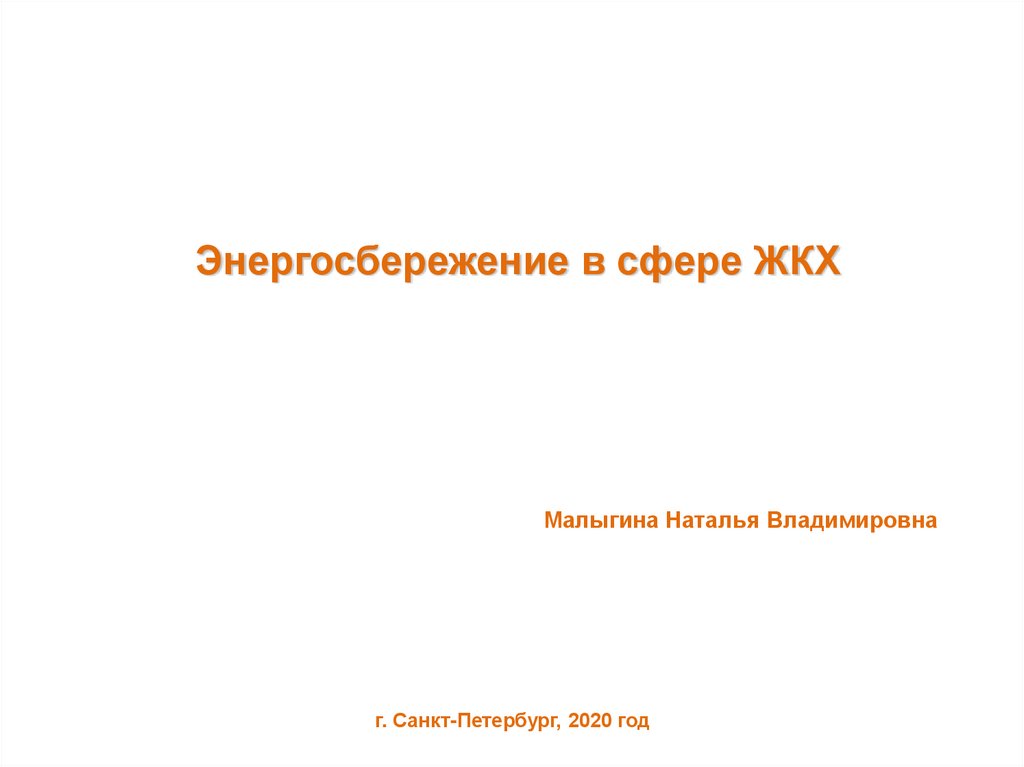 Энергосбережение в сфере ЖКХМалыгина Наталья Владимировна