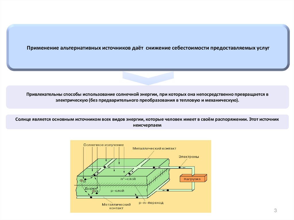 Применение альтернативных источников даёт снижение себестоимости предоставляемых услуг