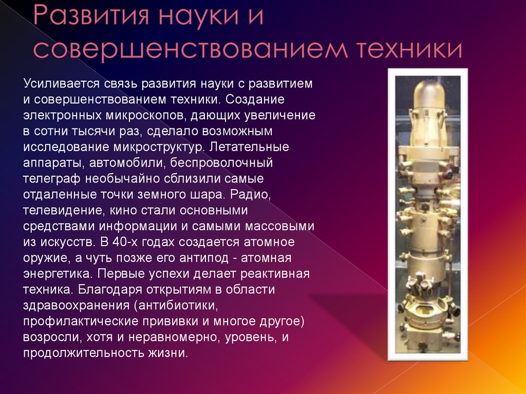 Усиливается связь развития науки с развитиеми совершенствованием техники. Создание