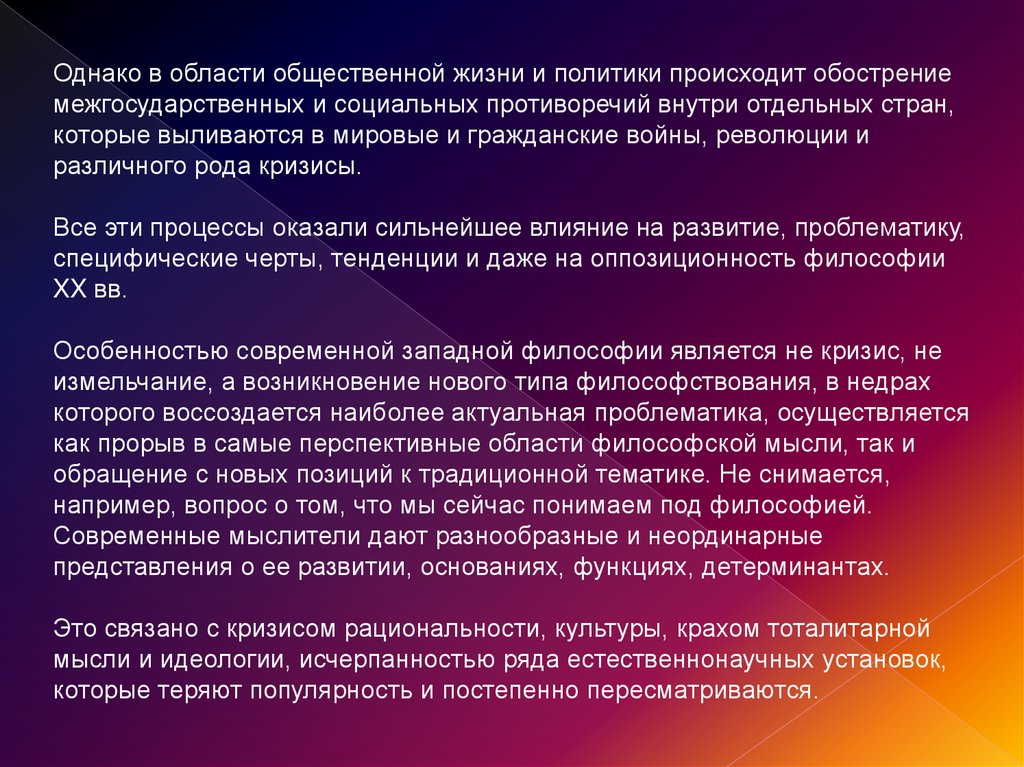 Это связано с кризисом рациональности, культуры, крахом тоталитарной