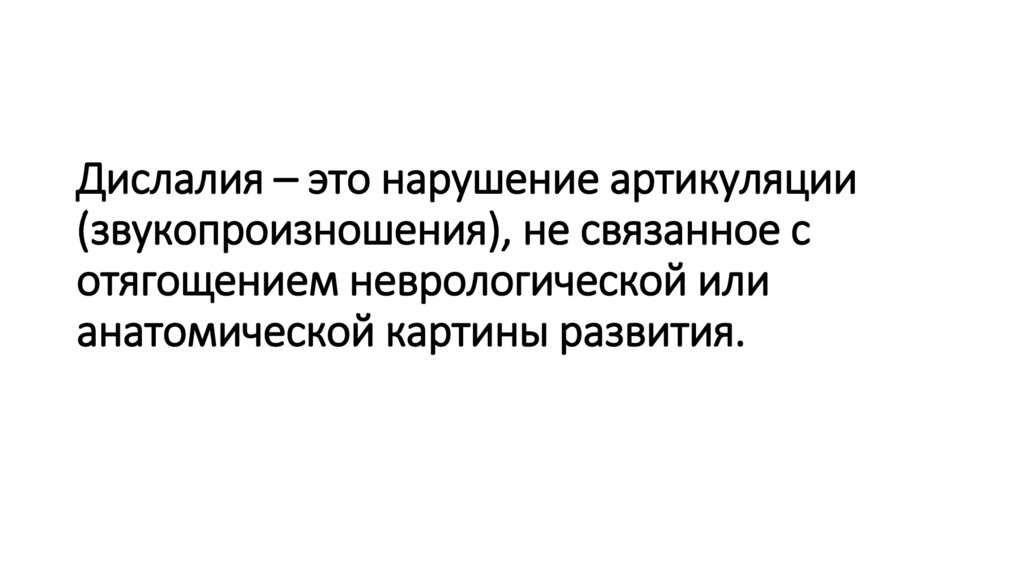 Дислалия – это нарушение артикуляции(звукопроизношения), не связанное с
