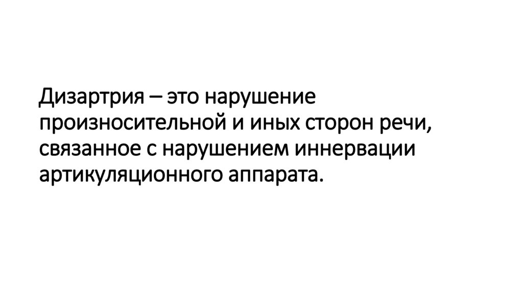 Дизартрия – это нарушениепроизносительной и иных сторон речи,