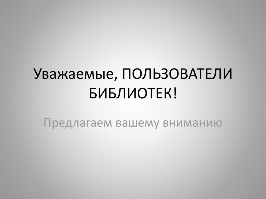 Уважаемые, ПОЛЬЗОВАТЕЛИБИБЛИОТЕК!