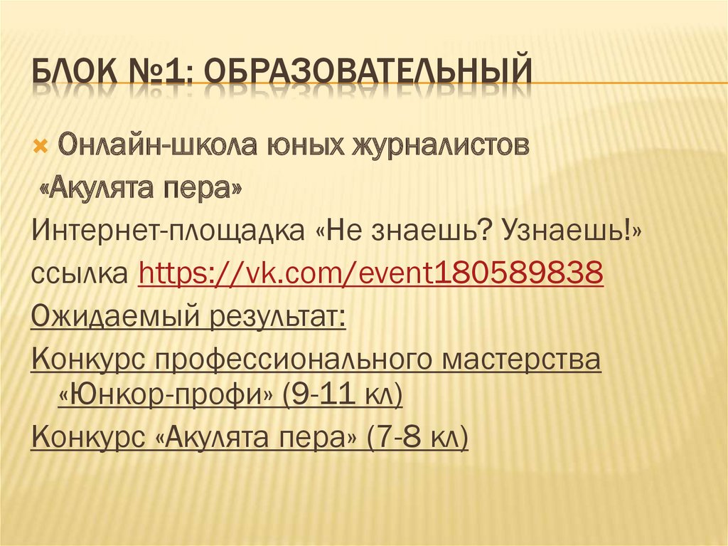 БЛОК №1: ОБРАЗОВАТЕЛЬНЫЙОнлайн-школа юных журналистов