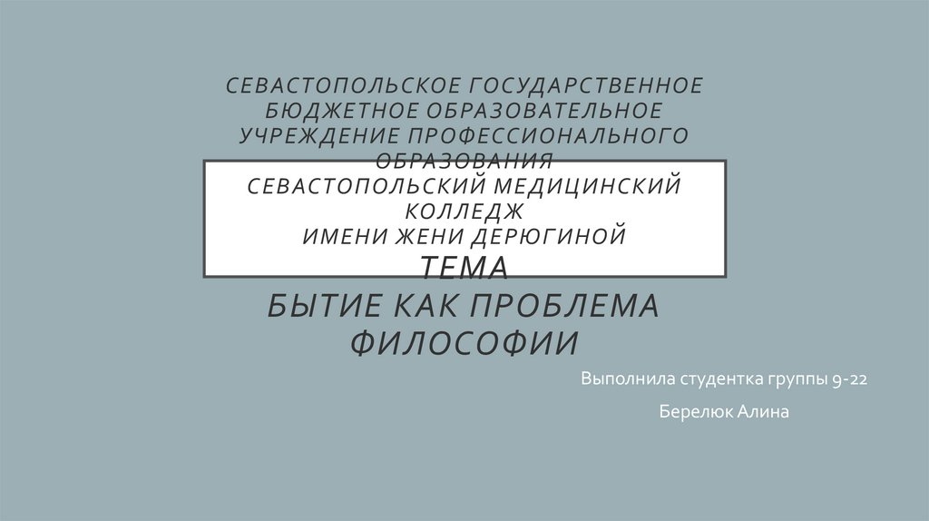 СЕВАСТОПОЛЬСКОЕ ГОСУДАРСТВЕННОЕБЮДЖЕТНОЕ ОБРАЗОВАТЕЛЬНОЕ