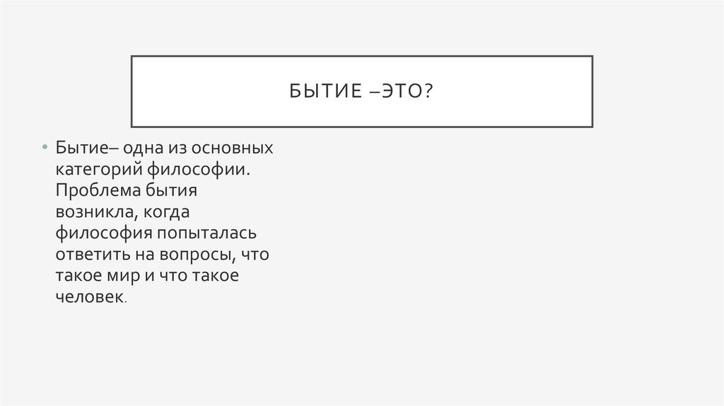 БЫТИЕ –ЭТО?• Бытие– одна из основных