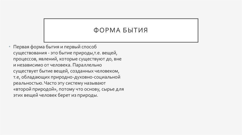 ФОРМА БЫТИЯ• Первая форма бытия и первый способ