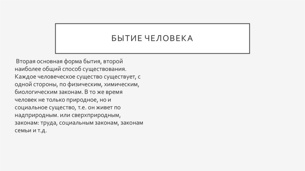 БЫТИЕ ЧЕЛОВЕКАВторая основная форма бытия, второй