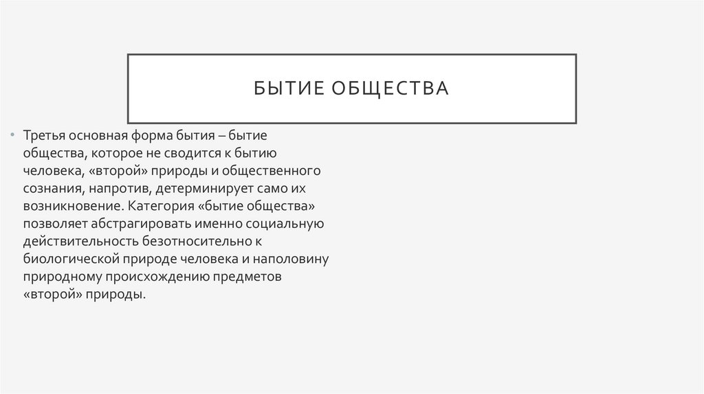 БЫТИЕ ОБЩЕСТВА• Третья основная форма бытия – бытие