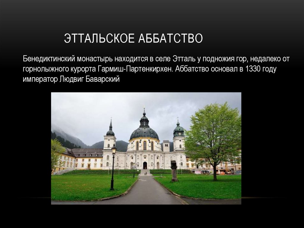 ЭТТАЛЬСКОЕ АББАТСТВОБенедиктинский монастырь находится в селе Этталь у подножия гор, недалеко от