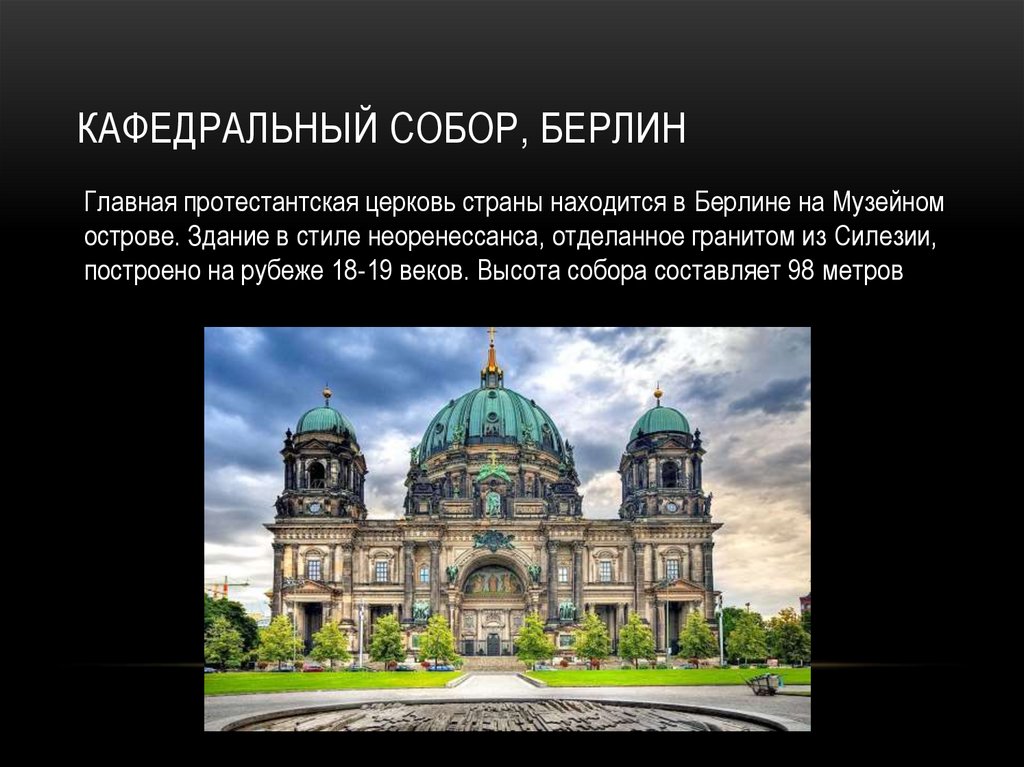 КАФЕДРАЛЬНЫЙ СОБОР, БЕРЛИНГлавная протестантская церковь страны находится в Берлине на Музейном