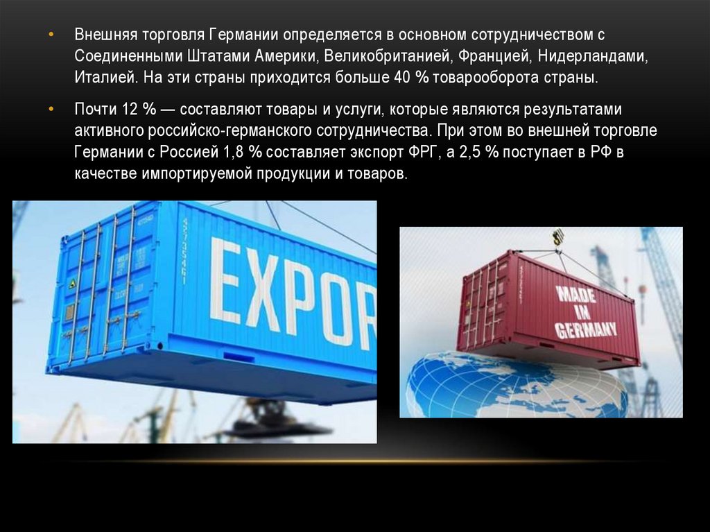 Внешняя торговля Германии определяется в основном сотрудничеством с
