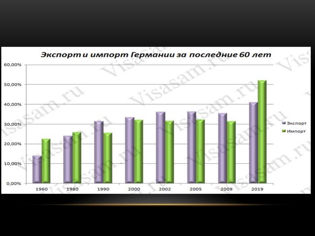 ВНЕШНЕЭКОНОМИЧЕСКАЯ ДЕЯТЕЛЬНОСТЬОсновные торговые партнеры Германии получают из страны следующие группы