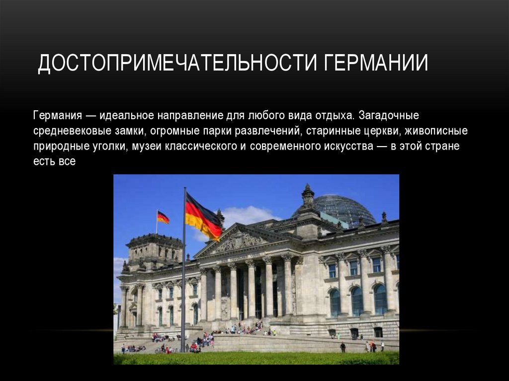 ДОСТОПРИМЕЧАТЕЛЬНОСТИ ГЕРМАНИИГермания — идеальное направление для любого вида отдыха. Загадочные