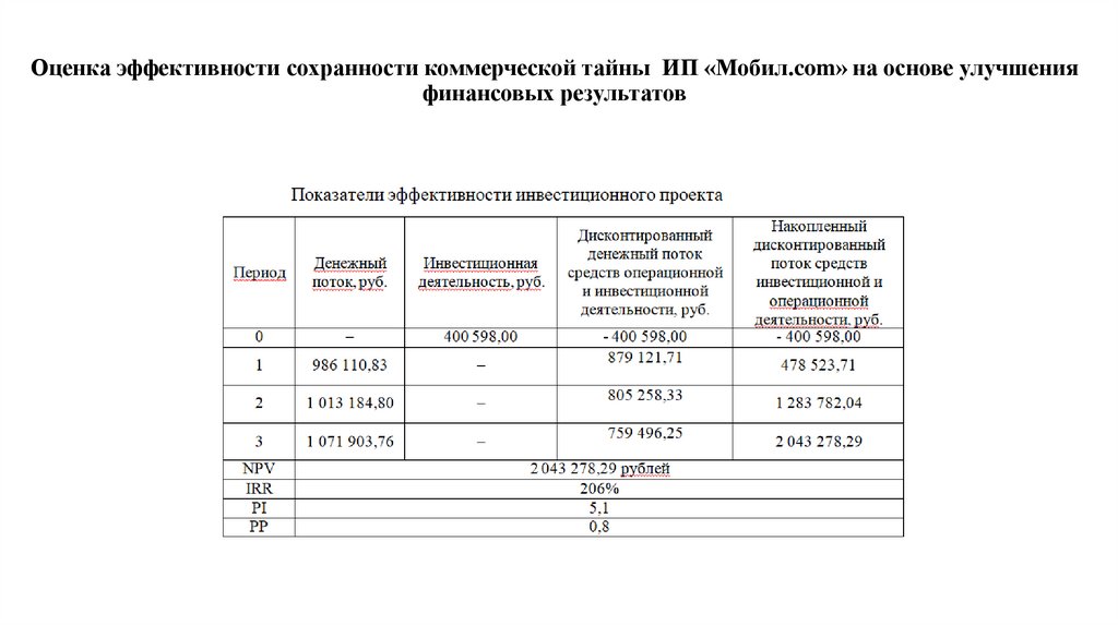 Оценка эффективности сохранности коммерческой тайны ИП «Мобил.com» на основе улучшенияфинансовых результатов