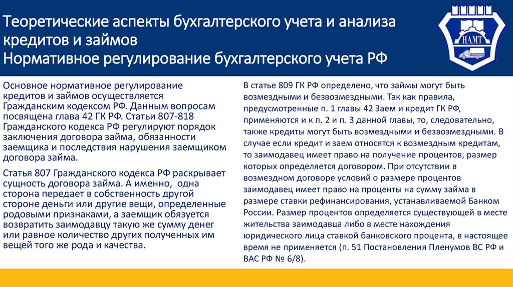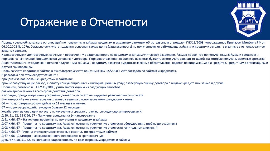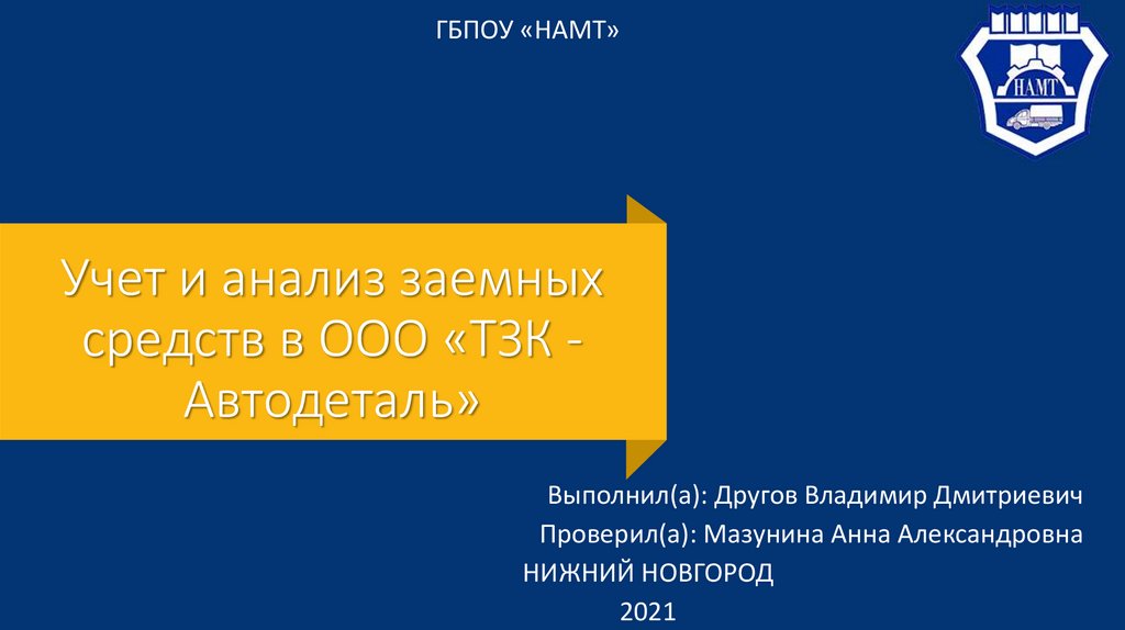 ГБПОУ «НАМТ»Учет и анализ заемных