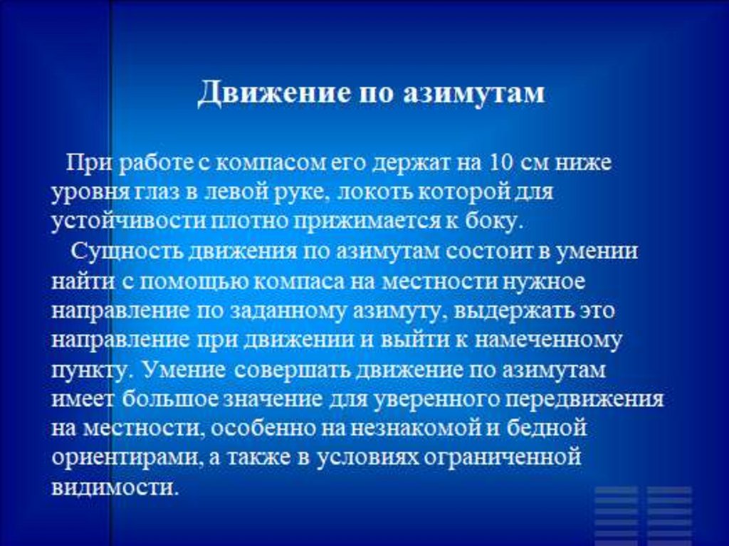 Ориентирование на местности без карты и движение по азимуту при решении боевых задач