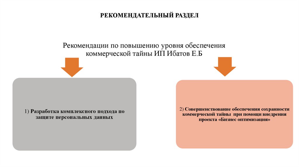 3.1 Рекомендации по повышению уровня обеспечения режима коммерческой тайны на ИП Ибатов Е. Б.
