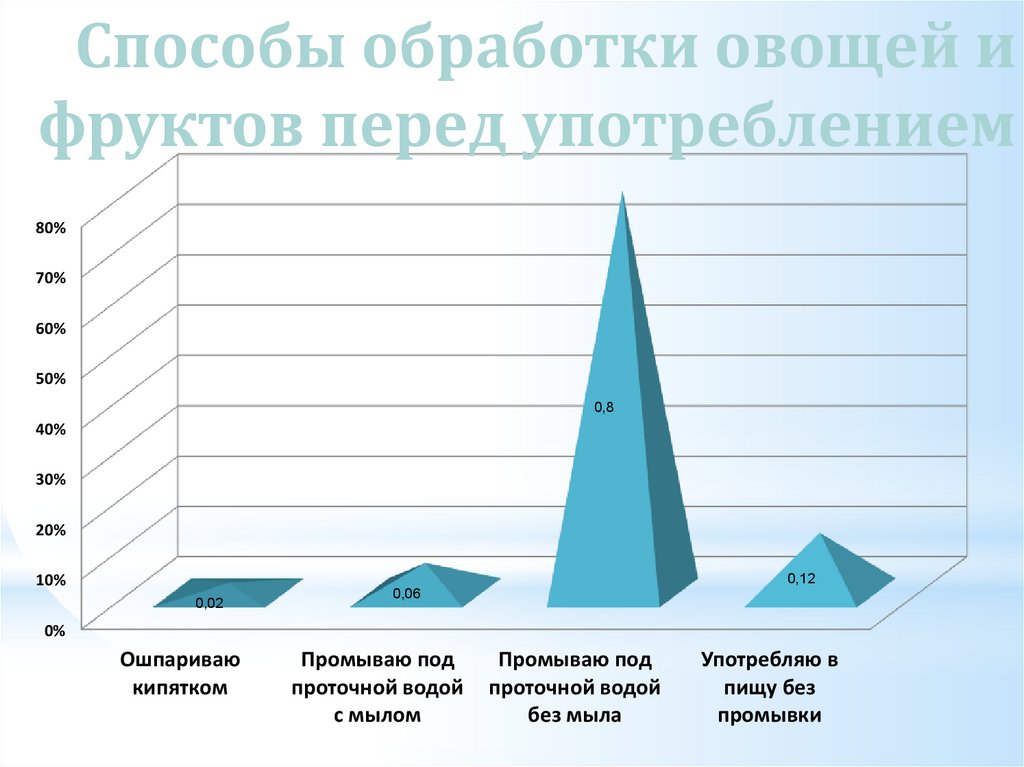 необходимо мыть овощи и фрукты под горячей водой с мылом или ошпаривать кипятком