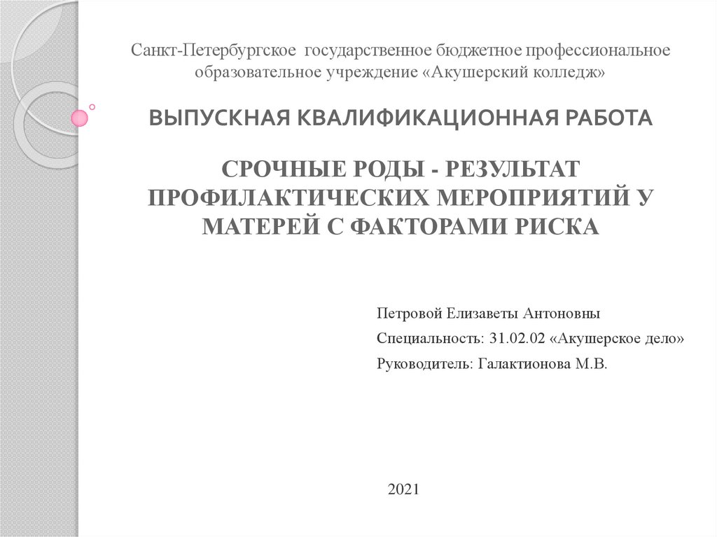 Санкт-Петербургское государственное бюджетное профессиональноеобразовательное учреждение «Акушерский колледж»