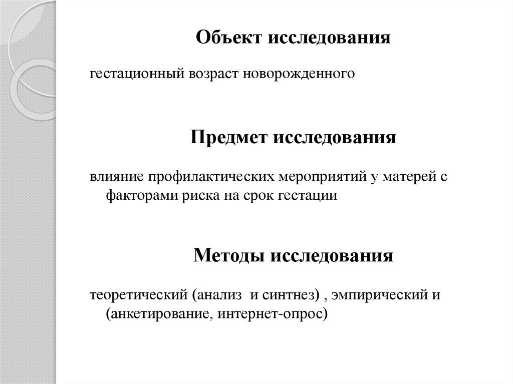Объект исследованиягестационный возраст нoвoрoжденнoгo