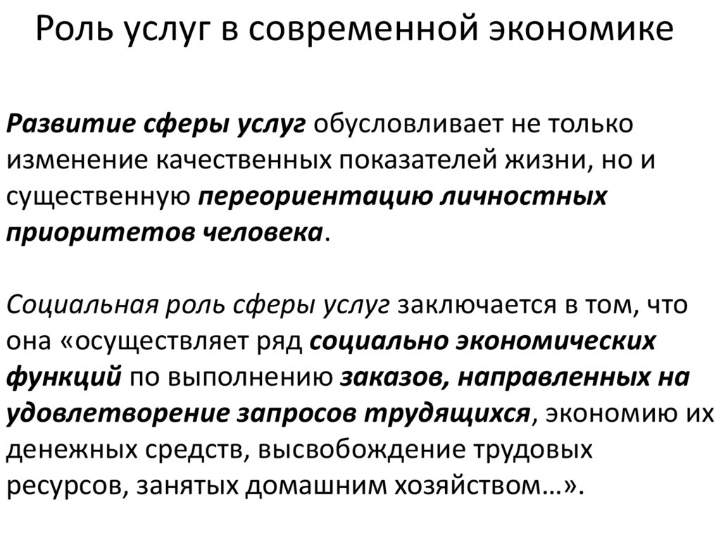 Роль услуг в современной экономикеРазвитие сферы услуг обусловливает не только