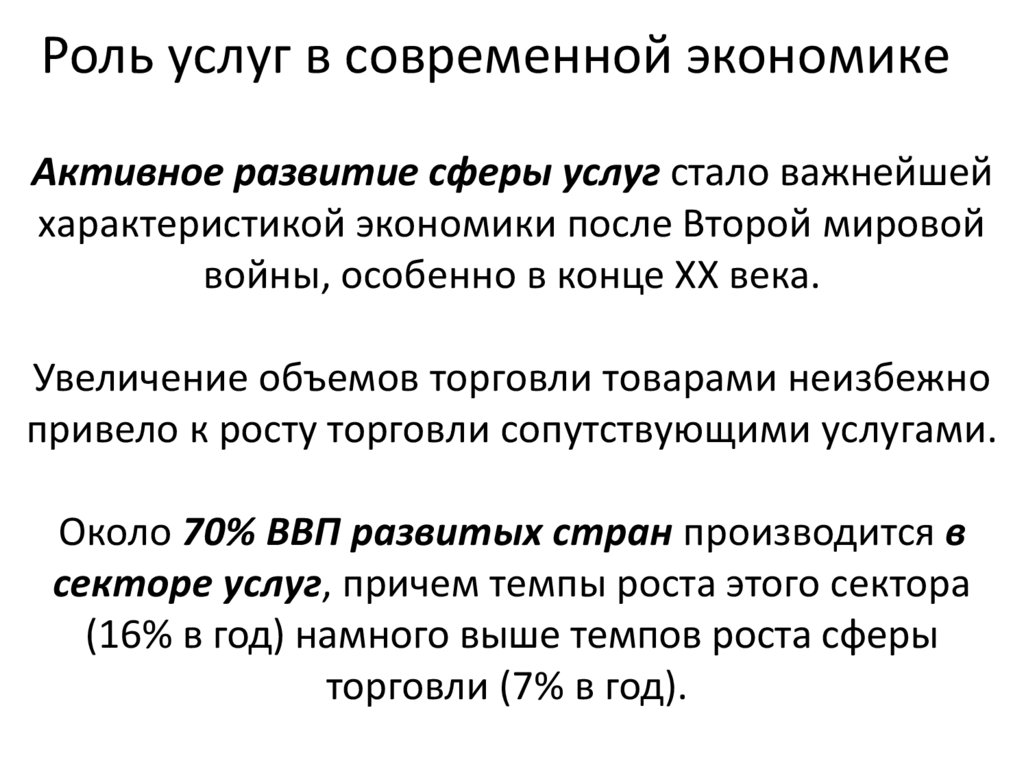 Роль услуг в современной экономикеАктивное развитие сферы услуг стало важнейшей