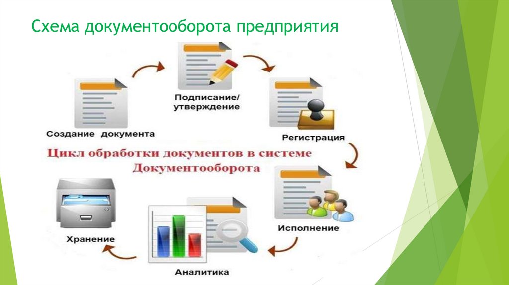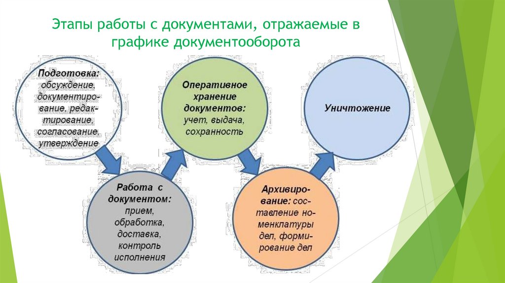 Этапы работы с документами, отражаемые вграфике документооборота