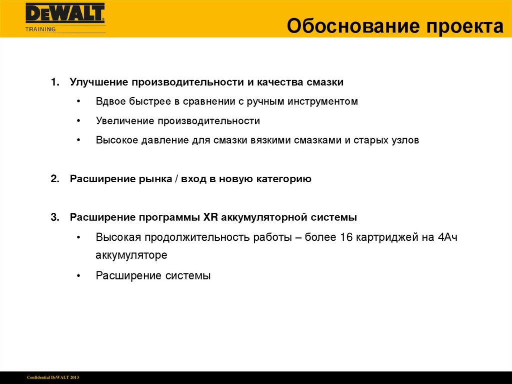 XR 18В Смазочный пистолетConfidential DEWALT 2013