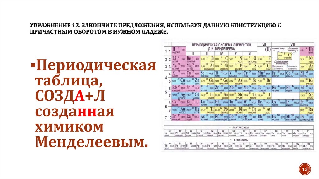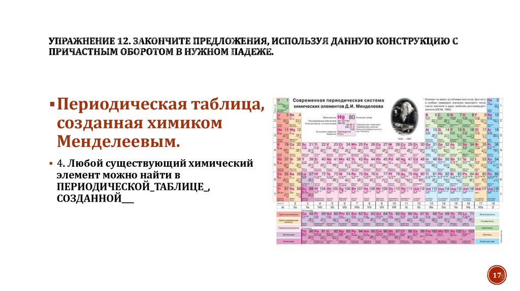 таблицЫ, СОЗДАННОЙ МЕНДЕЛЕЕВЫМ