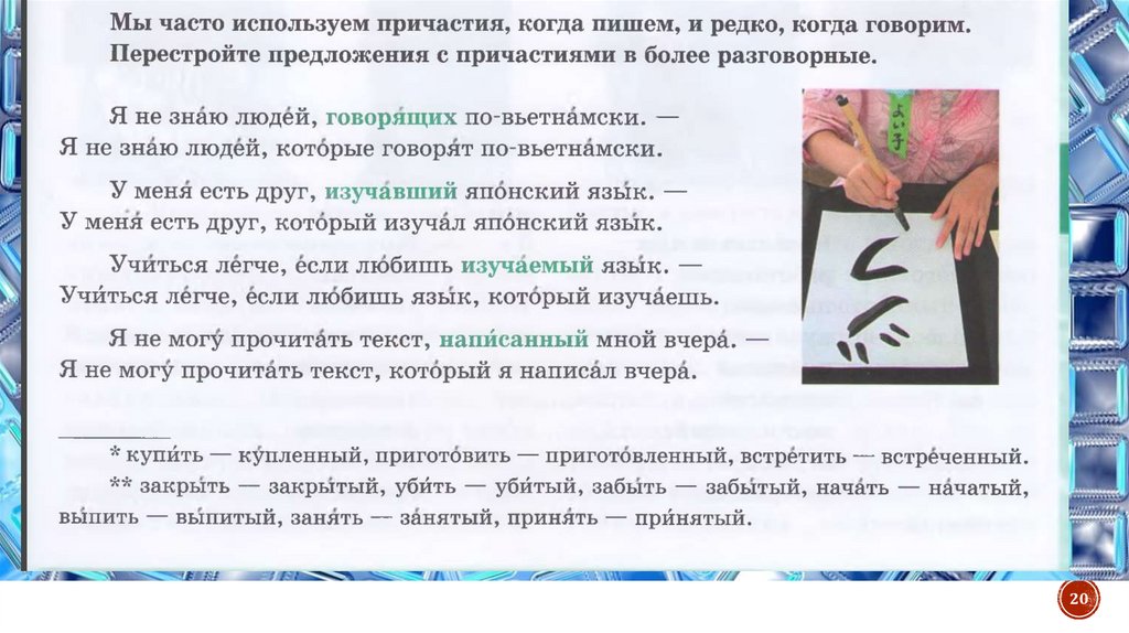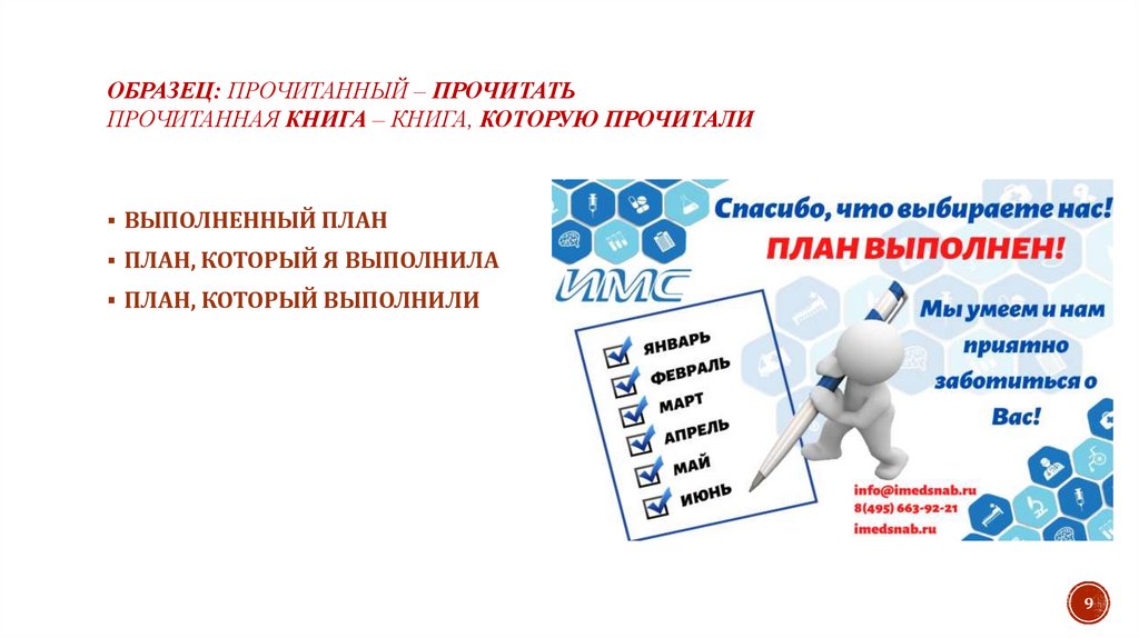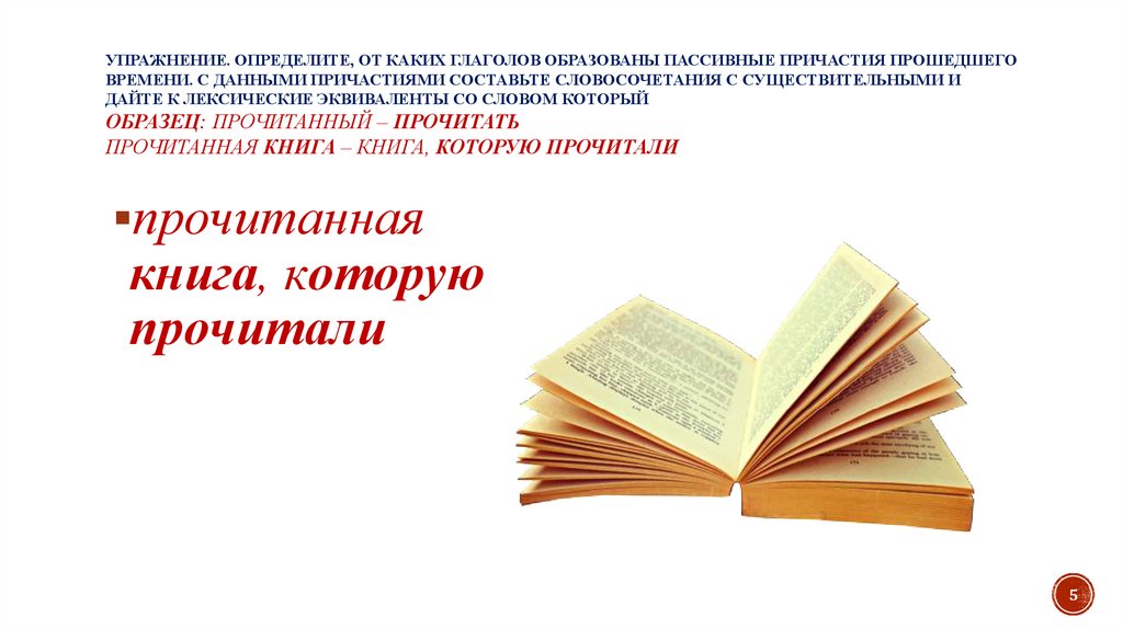 ОБРАЗЕЦ: ПРОЧИТАННЫЙ – ПРОЧИТАТЬПРОЧИТАННАЯ КНИГА – КНИГА, КОТОРУЮ ПРОЧИТАЛИ