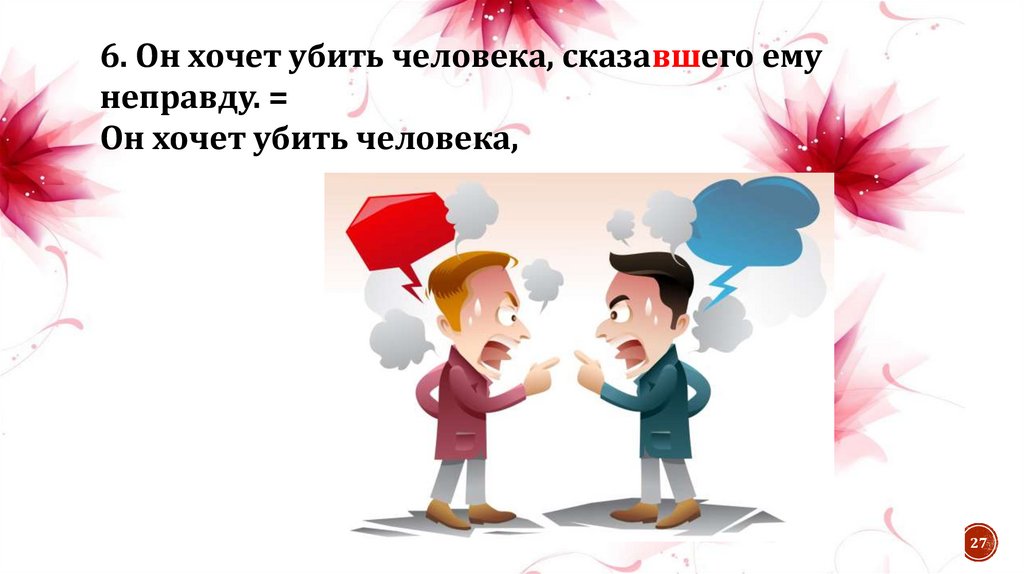 6. Он хочет убить человека, сказавшего емунеправду. =