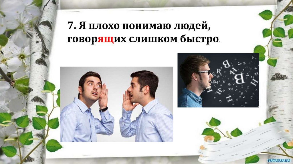 7. Я плохо понимаю людей,говорящих слишком быстро.