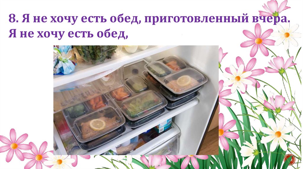 8. Я не хочу есть обед, приготовленный вчера.Я не хочу есть обед,