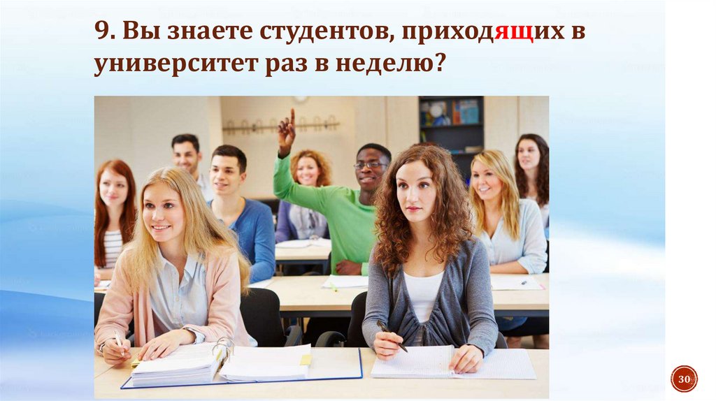 9. Вы знаете студентов, приходящих вуниверситет раз в неделю?