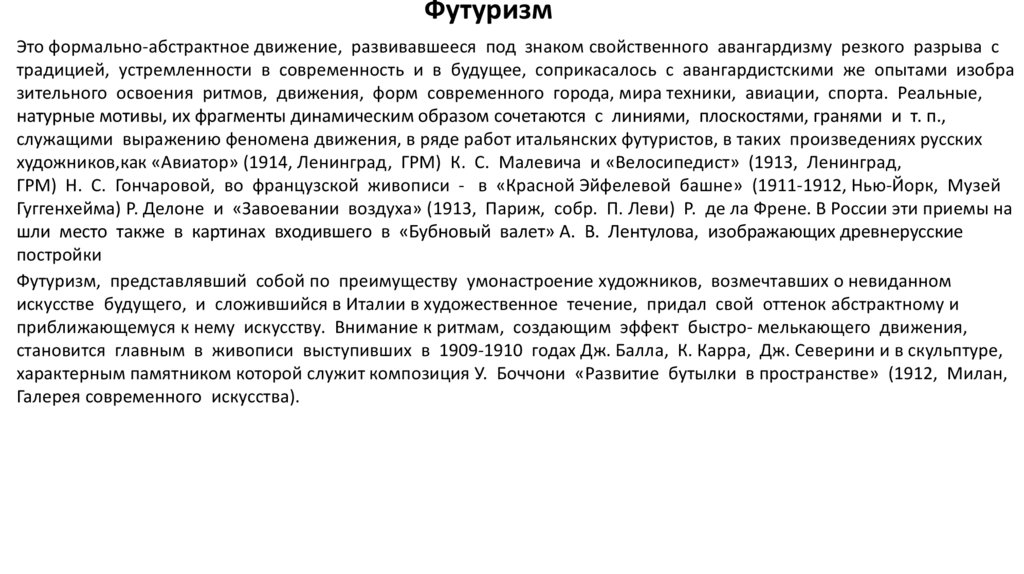классических произведений футуризма. Гончарова принадлежала к поколению мастеров, формирующих новую