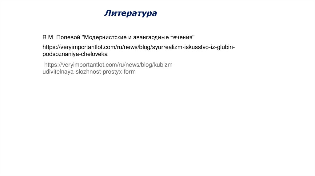 ЛитератураВ.М. Полевой "Модернистские и авангардные течения"