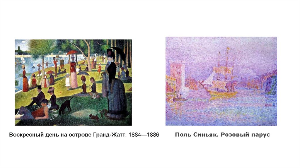 Сёра от импрессионистов. Впоследствии стиль Сёра также получил название «пуантилизм».