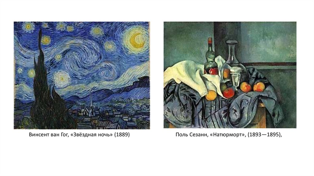 Винсент ван Гог, «Звёздная ночь» (1889)Поль Сезанн, «Натюрморт», (1893—1895),