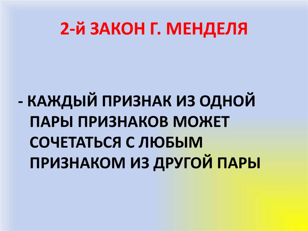 2-й ЗАКОН Г. МЕНДЕЛЯ- КАЖДЫЙ ПРИЗНАК ИЗ ОДНОЙ
