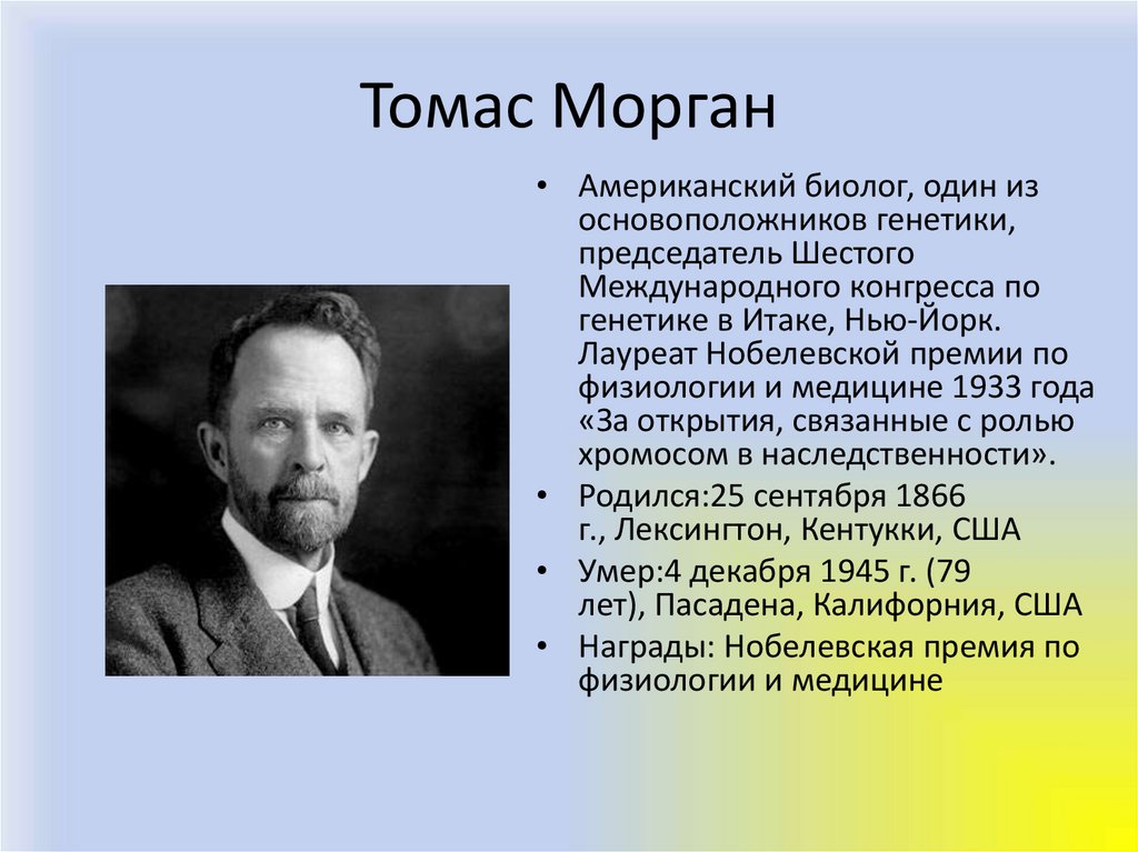 Томас Морган• Американский биолог, один из