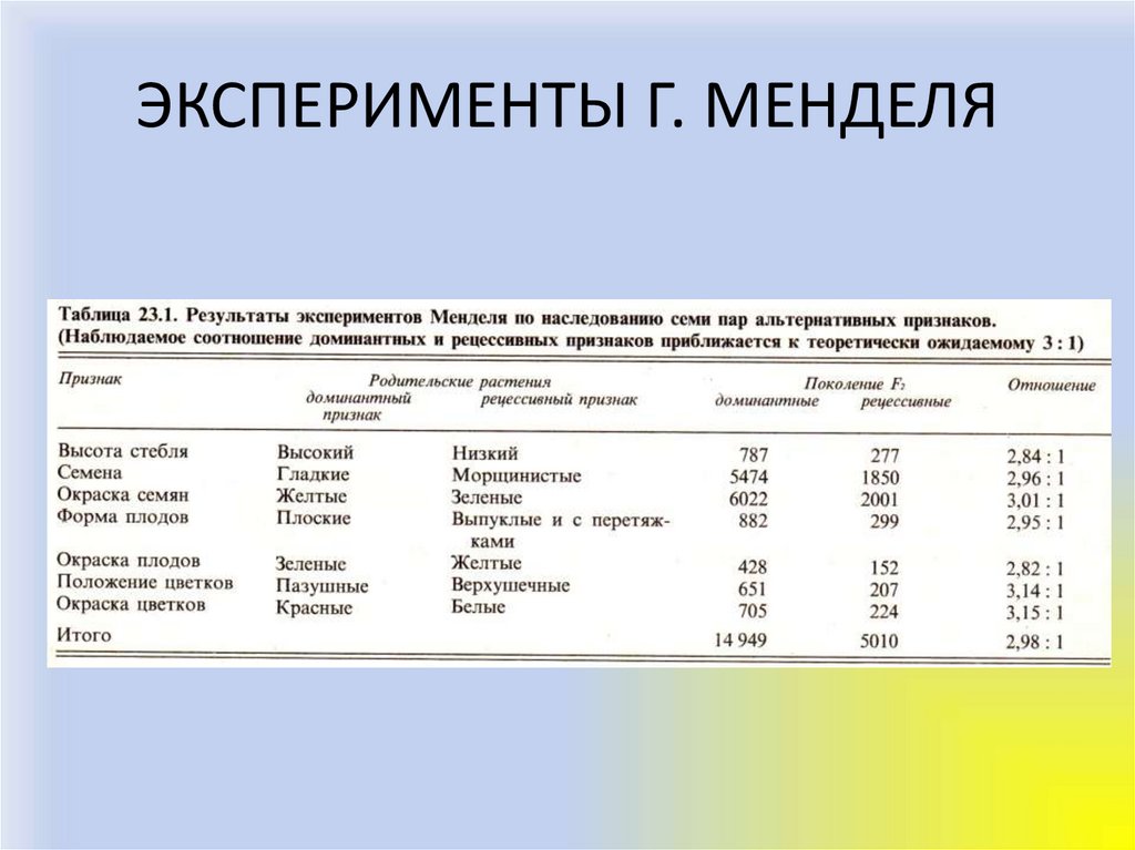 ЭКСПЕРИМЕНТЫ Г. МЕНДЕЛЯ6.