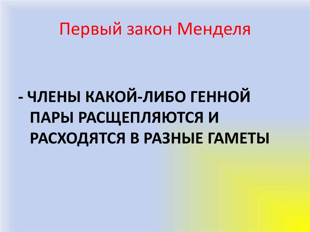 Первый закон Менделя- ЧЛЕНЫ КАКОЙ-ЛИБО ГЕННОЙ