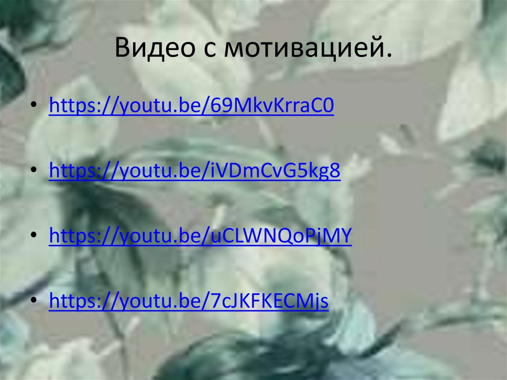 Видео с мотивацией.• https://youtu.be/69MkvKrraC0
