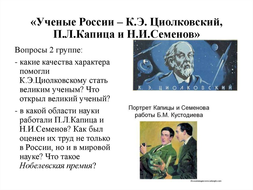 «Ученые России – К.Э. Циолковский,П.Л.Капица и Н.И.Семенов»