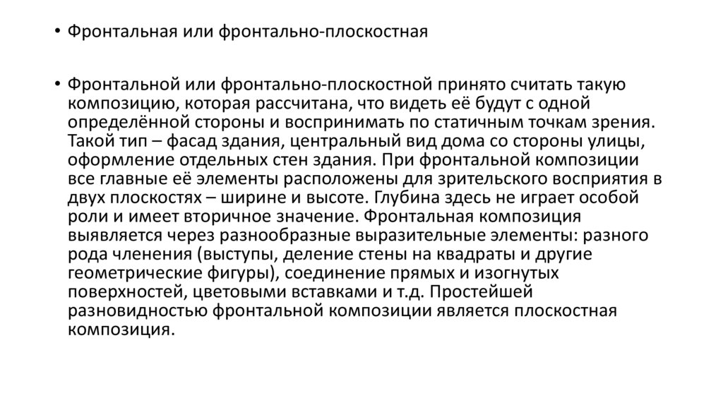 • Типы композиций• Фронтальная или фронтально-плоскостная