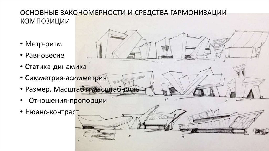 выполняемых эскизах вопросы, связанные с равновесием придуманной объёмно-пространственной