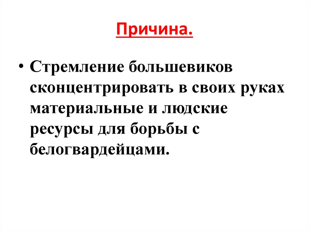 Причина.• Стремление большевиков