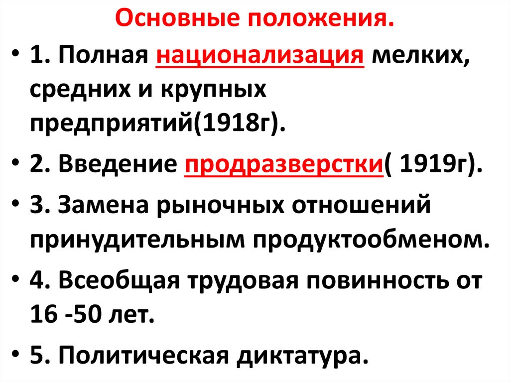 1. Полная национализация мелких,